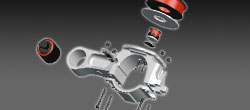Este sistema de muelle de eje especial amortigua las vibraciones y reduce el ruido.